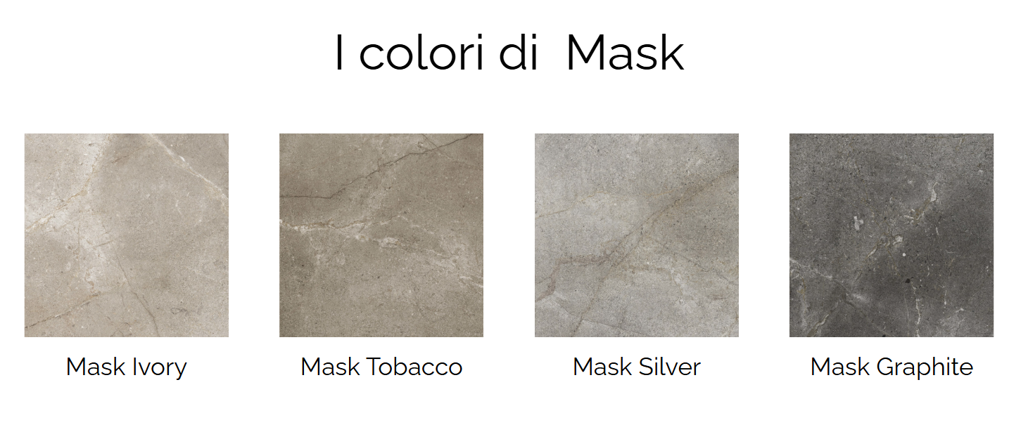 MASK non è una semplice superficie: è un’atmosfera. Una collezione che veste gli ambienti con una bellezza silenziosa, profonda, contemporanea. Le sue tonalità – Ivory, Tobacco, Silver, Graphite – non coprono, ma svelano: rivelano la personalità di chi vive lo spazio, esaltano la luce, amplificano le emozioni.Le superfici sono morbide, materiche, con una grafica intensa e raffinata che richiama l’essenza del cemento moderno, ma con un’anima calda e accogliente. Ogni formato – dal grande 60×120 al versatile 30×60 – è pensato per creare ambienti fluidi, armoniosi, senza tempo.