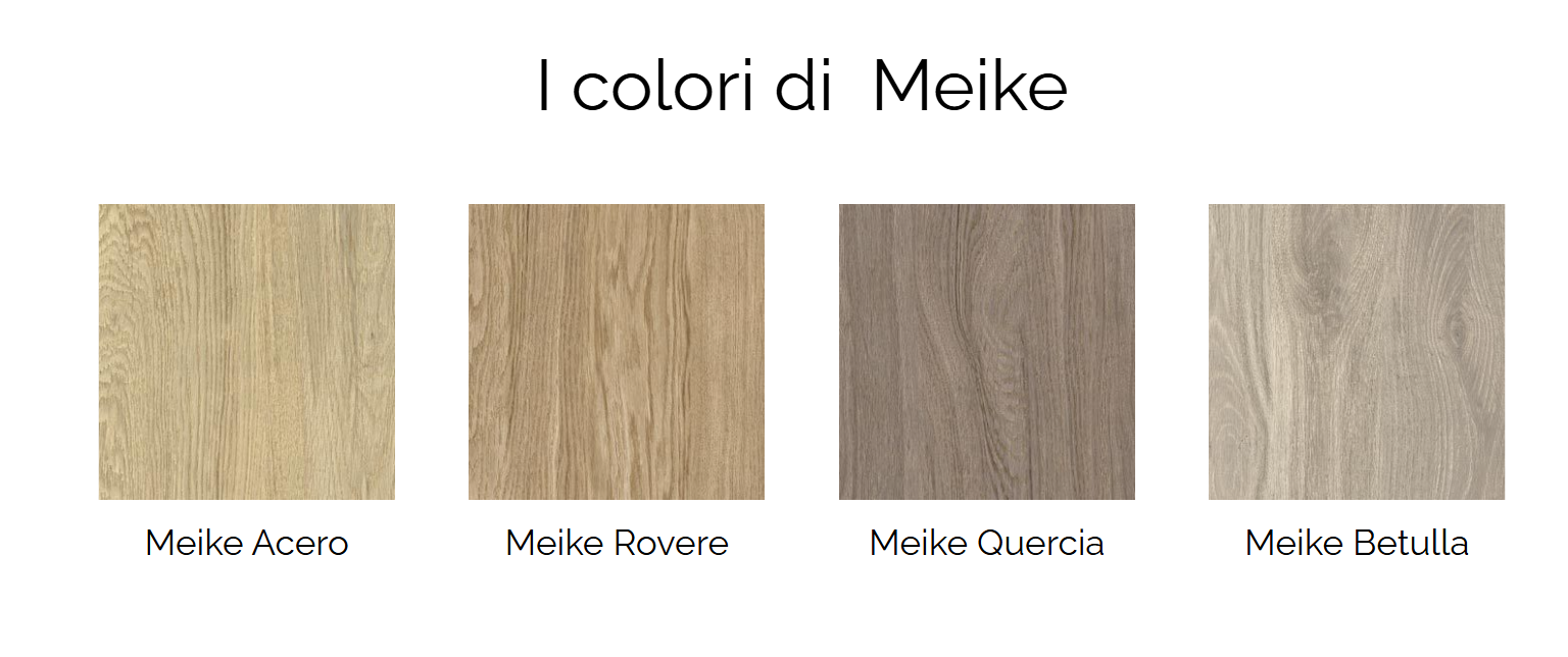 Meike è la collezione in gres porcellanato effetto legno che unisce naturalezza, calore e prestazioni tecniche. Disponibile in quattro essenze e due formati rettificati, offre superfici resistenti, versatili e adatte a ogni ambiente. Il decoro 3D Flora Rigatino completa la gamma con un tocco di design contemporaneo.