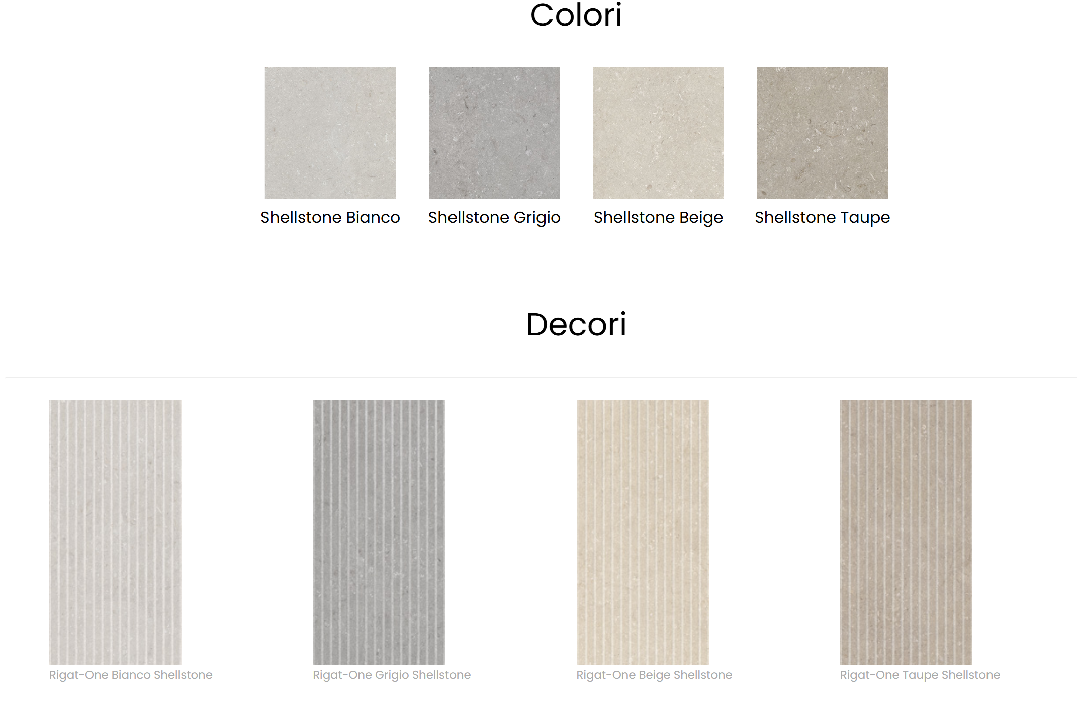 La collezione Shellstone è stata progettata per ricreare l'estetica di uno dei calcari più famosi al mondo, spesso utilizzato per rivestire superfici interne ed esterne. I 4 colori sono protetti da morbide sfumature, leggeri frammenti di conchiglie fossilizzate e una superficie naturale, arricchita da tutti i vantaggi del gres porcellanato. Disponibile in diversi formati e spessori per soddisfare tutte le esigenze residenziali e commerciali, indoor e outdoor.